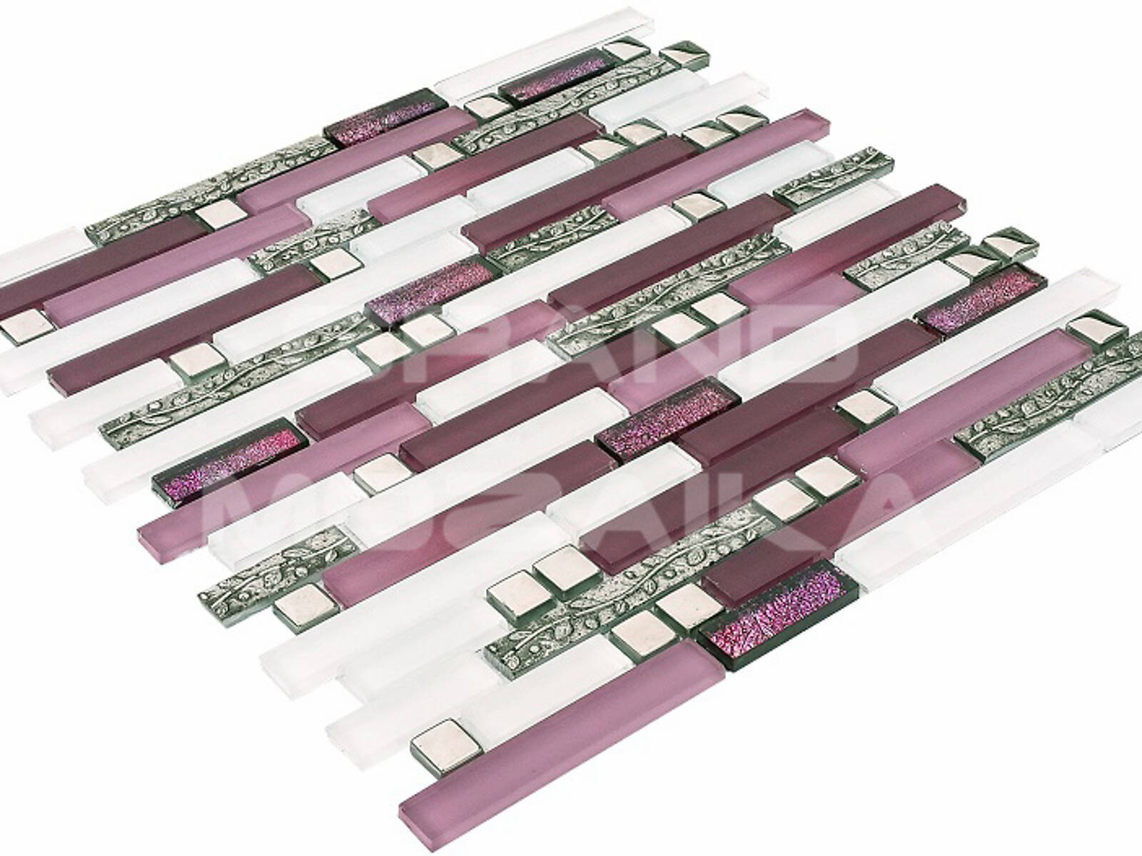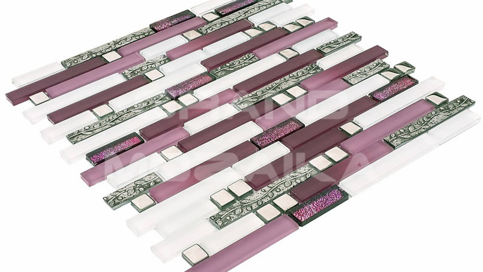 Стеклянная мозаика, серия Barok, цвет: белый, серебряный, фиолетовый, размер чипа (мм): произвольно